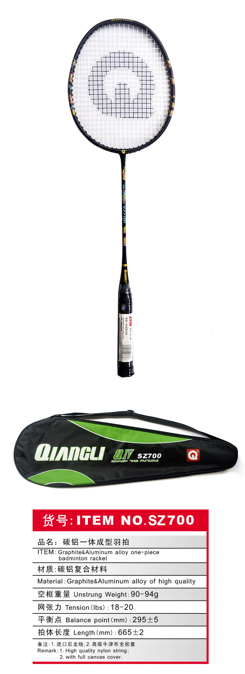 SZ 700碳铝一体成型羽拍>