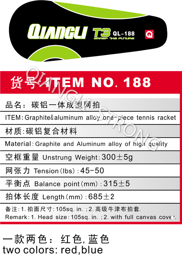 188 graphite&aluminum alloy one piece tennis ra