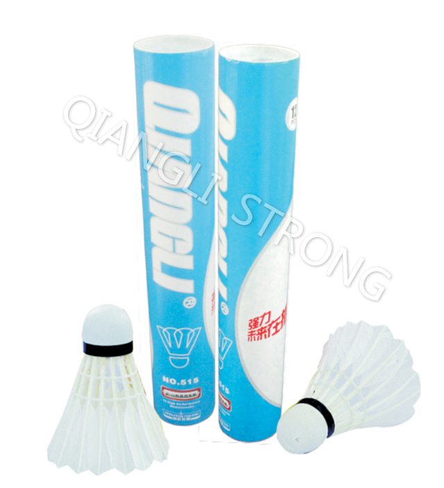 货号:ITEM NO.515品名:筒装羽毛球ITEM:feather shuttlecocks材质:鸭毛 + 发泡material:duck feather + foam head备注:12粒/筒 50筒/箱remark:12pcs/tube.50tubes/ctn
