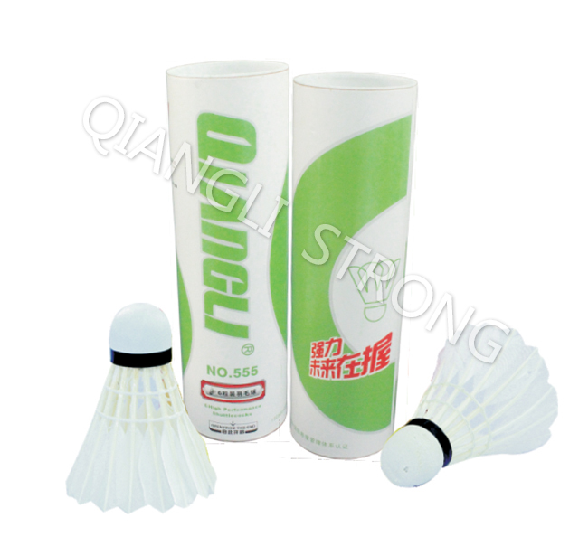 货号:ITEM NO.555品名:筒装羽毛球ITEM:feather shuttlecocks材质:鸭毛 + 发泡material:duck feather + Foam head备注:6粒/筒 50筒/箱remark:6pcs/tube.50tubes/ctn