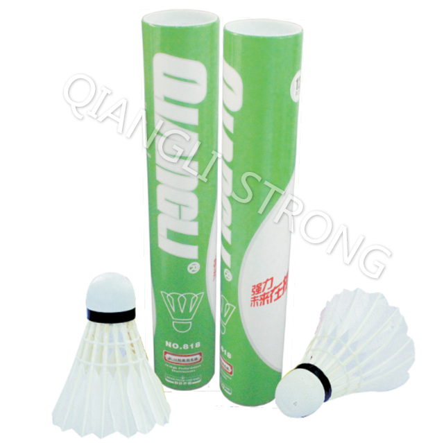货号:ITEM NO.818品名:筒装高级羽毛球ITEM:feather shuttlecocks材质:鸭毛 + 台纤软木球头material:duck feather +high quality Man-made cork备注:12粒/筒 50筒/箱remark:12pcs/tube.50tubes/ctn