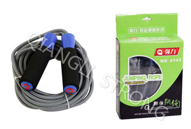 货号:ITEM NO.0143品名:群体跳绳ITEM:jumping rope规格:长7米 粗0.8cmSIZE:length:7m,width:0.8cm材质:丙纶、泡棉、PP手柄、PVC绳(外附丙纶),单条彩盒装Material:Foam pp grip+pvc rope